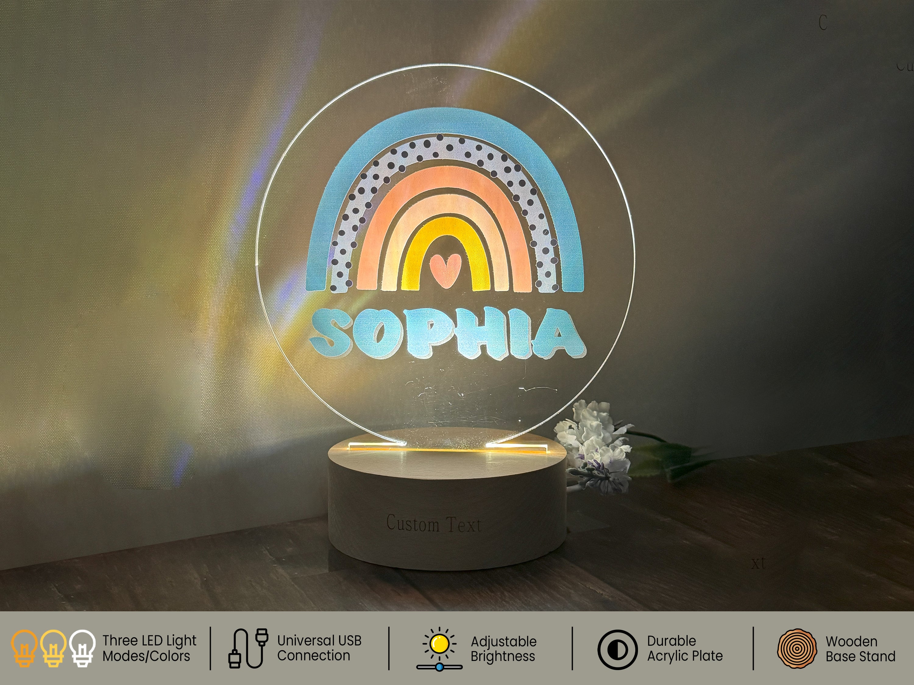 Illuminate your girl’s room with the enchanting glow of our Custom Name Rainbow Night Light. This delightful nightlight showcases a vibrant rainbow design that adds a splash of color and a touch of magic to any space, creating a dreamy ambiance for bedtime.