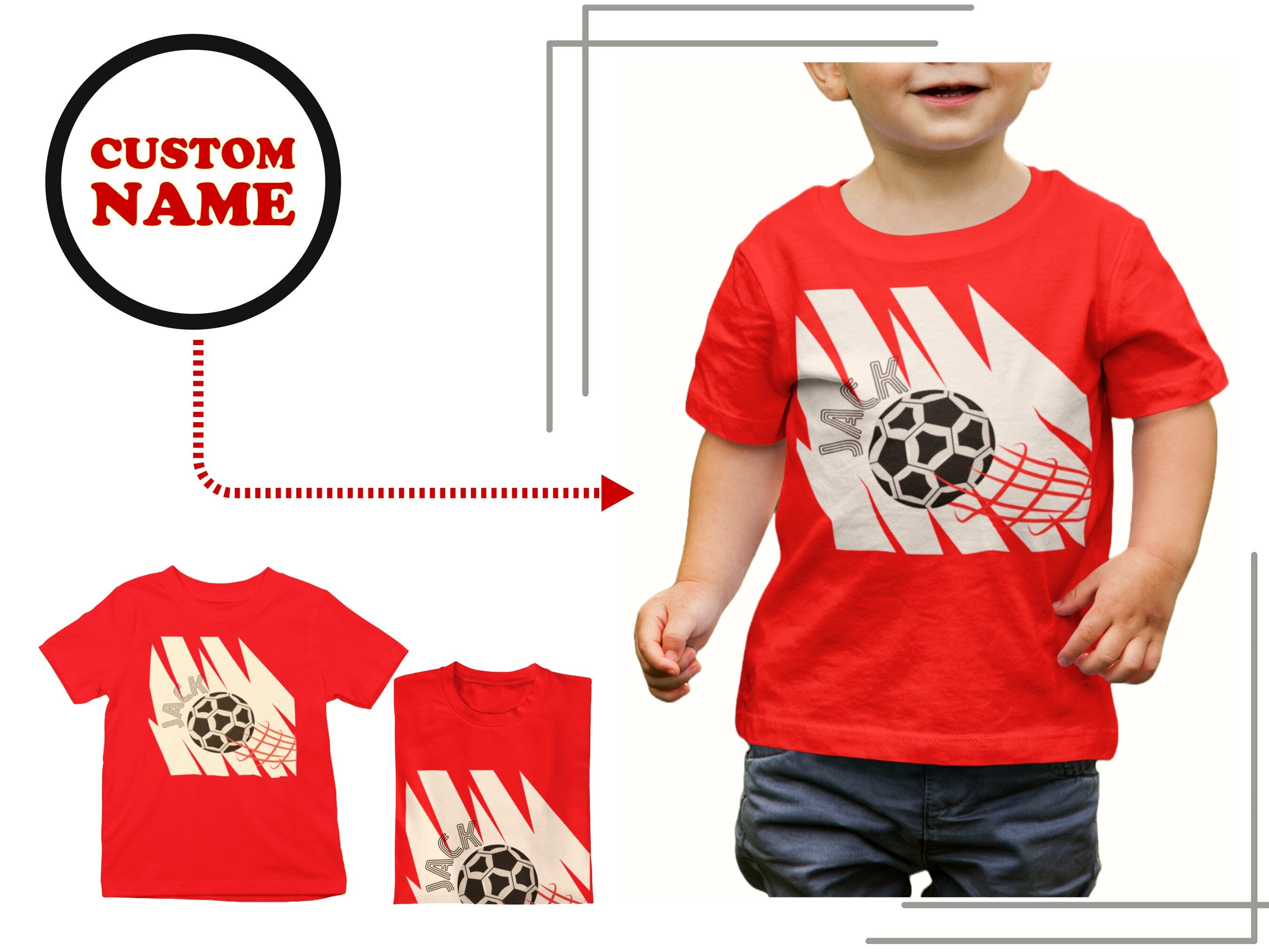Celebrate your little athlete's birthday with our Custom Name Soccer Ball Sports Shirt for Boys! This personalized short-sleeve T-shirt is the perfect gift for your baby boy, featuring his name and a vibrant soccer ball design that he'll love. Crafted from soft, breathable fabric, it ensures ultimate comfort for active play and sports activities.