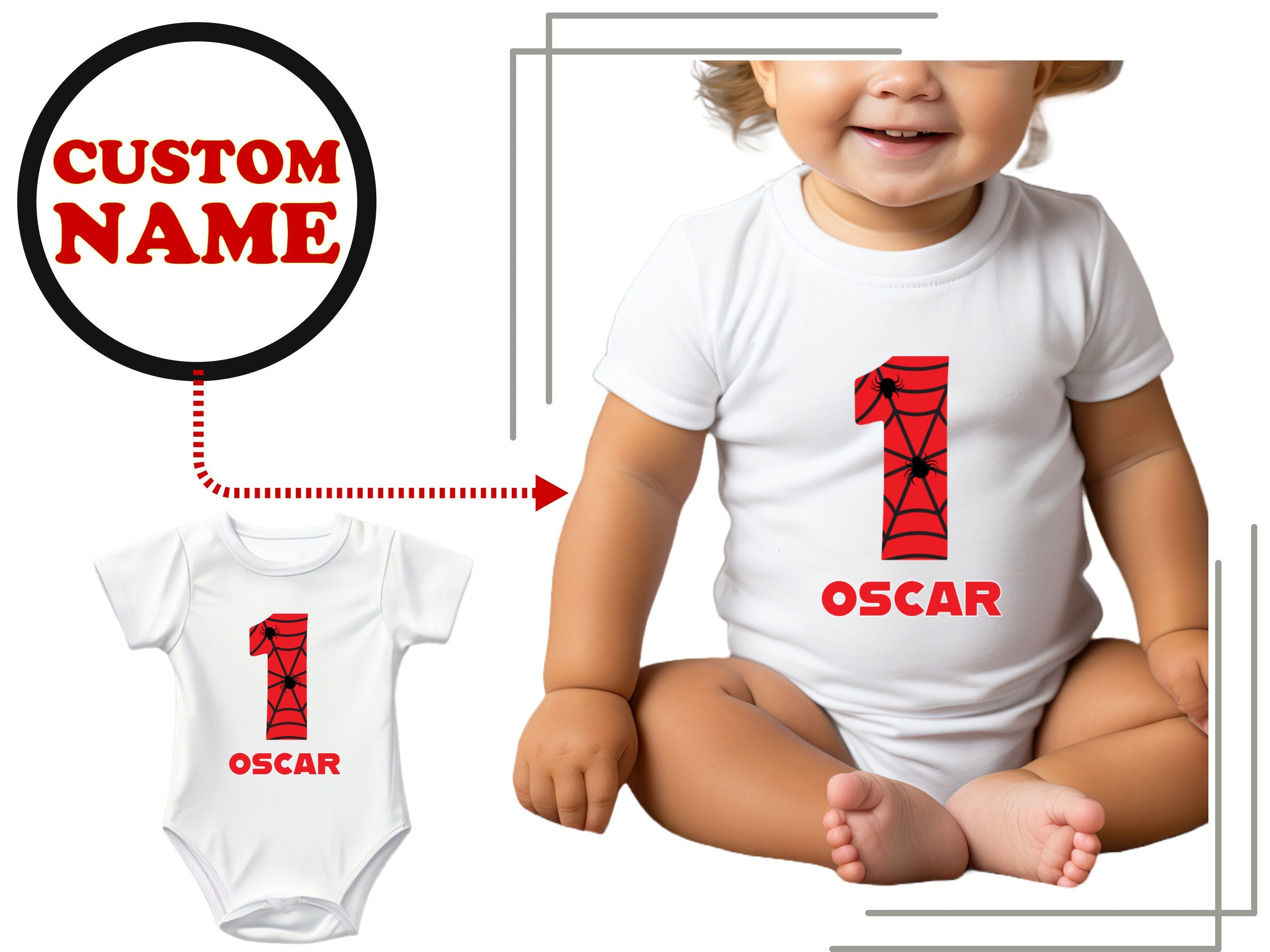 Custom 1st Birthday Spiderman inspired Bodysuit Baby Vest For Babies