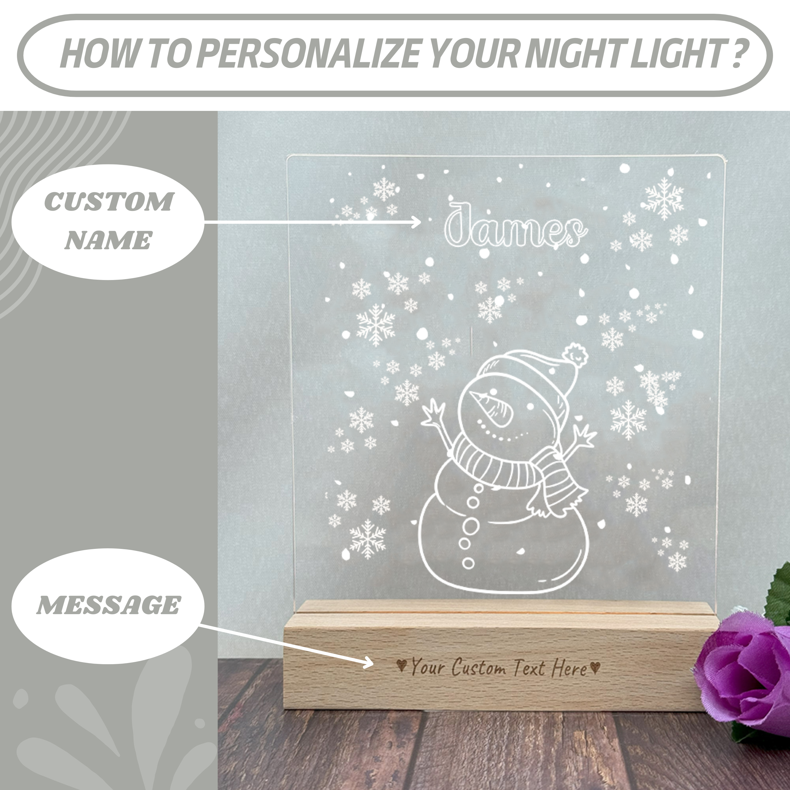 Create a winter wonderland in your child’s room with our Custom Christmas Snowman Night Light Gift for Toddler Kids Bedroom Décor! This enchanting night light, adorned with a beautiful Christmas Snowman design, brings the magic of winter indoors, providing a gentle, soothing glow that makes bedtime cozy and inviting.