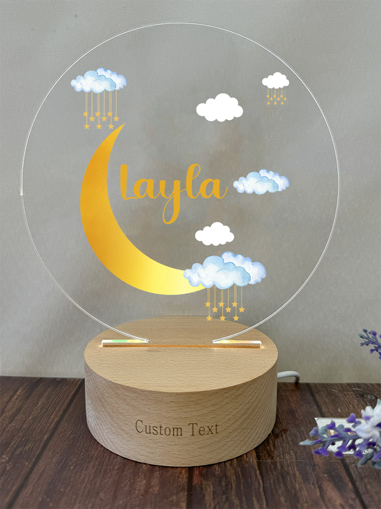 Create a dreamy atmosphere in your girl's room with this Custom Clouds And Moon Night Light, personalized with her name for a unique touch. This enchanting nightlight features a serene clouds and moon design, casting a gentle glow that’s perfect for bedtime. It's an ideal gift for girls, adding both charm and comfort to their bedroom decor.