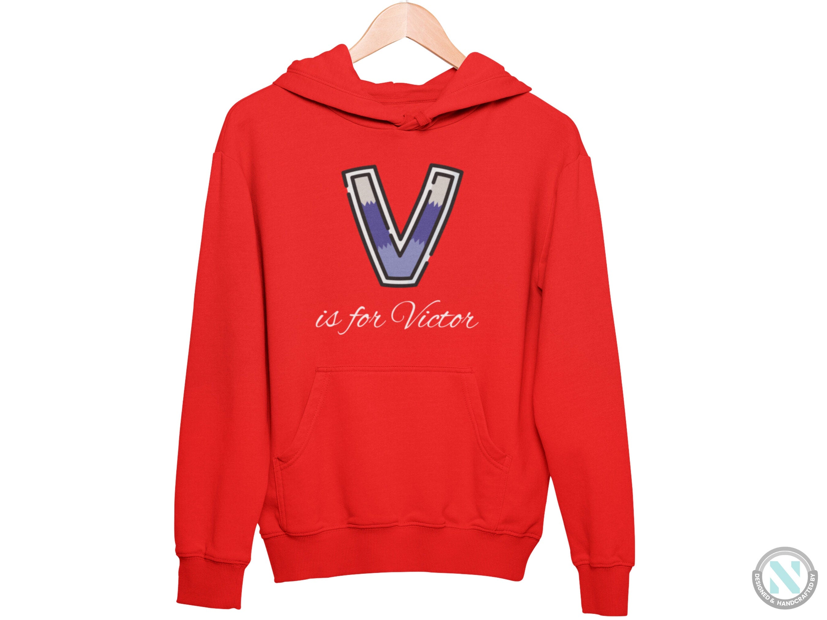 Custom Name Long Sleeve Hoodie with Initial V for Toddler Boys