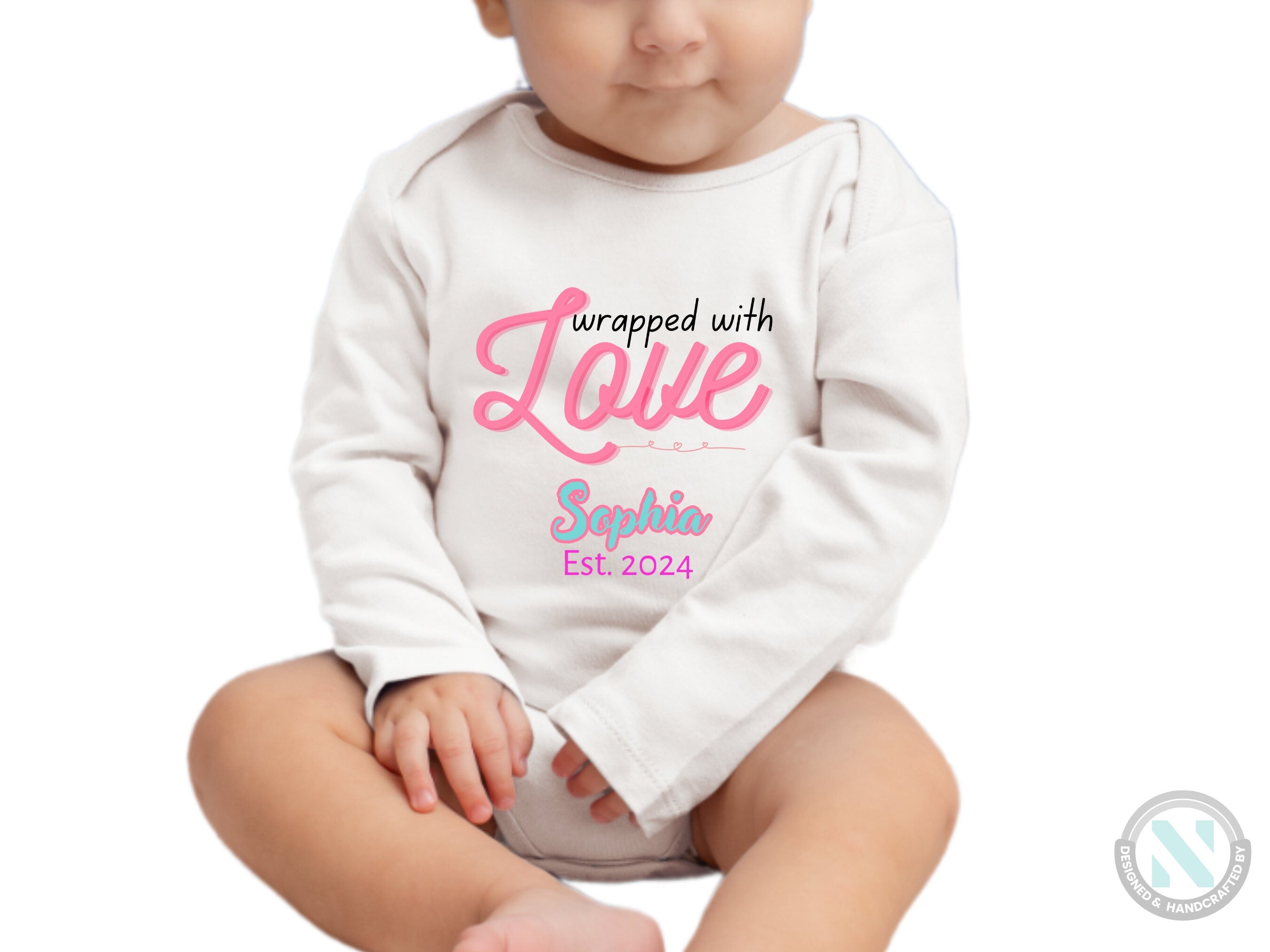 Personalized Baby Bodysuit with "Wrapped With Love," Ideal Birthday & Christmas Gift