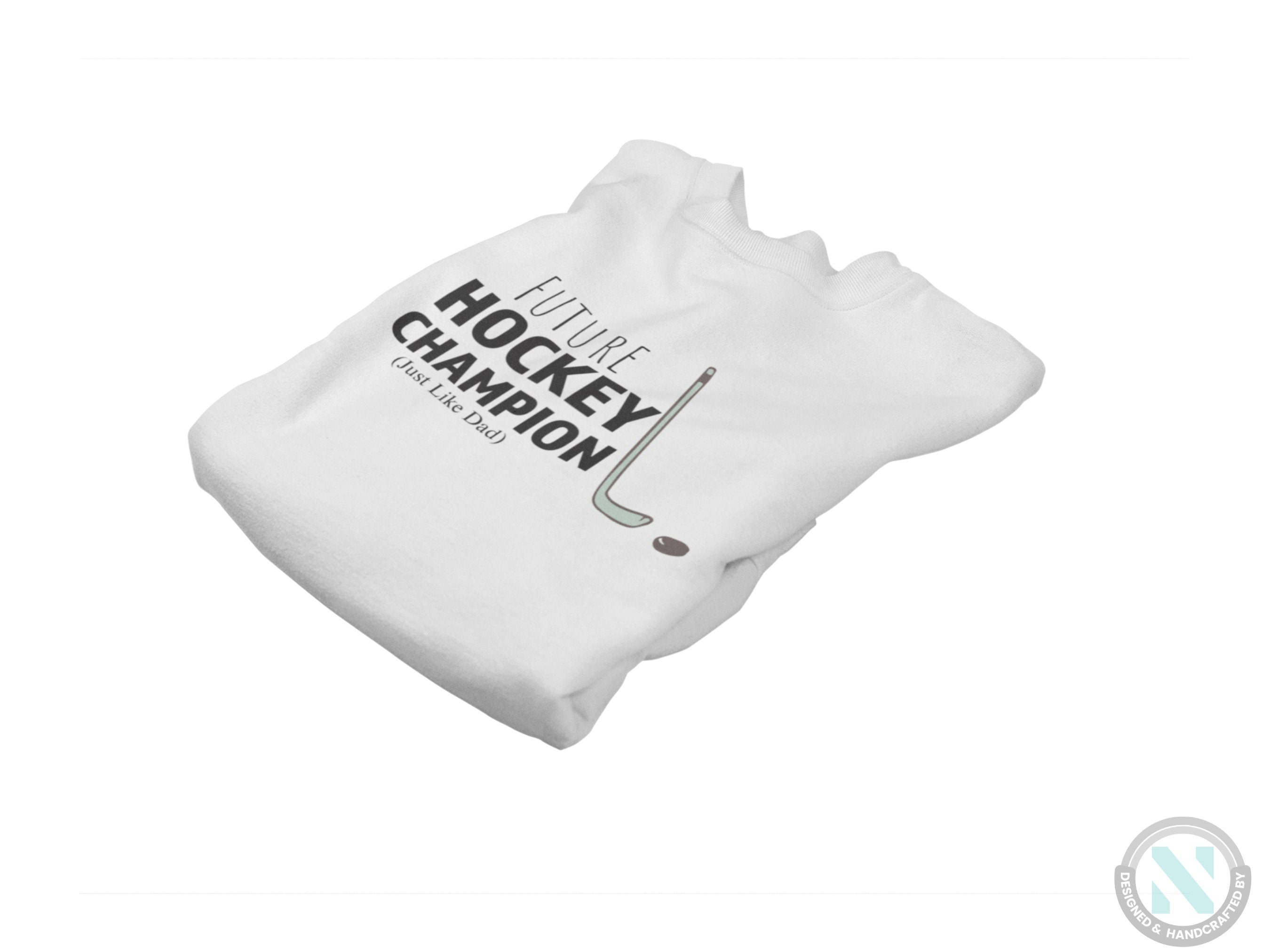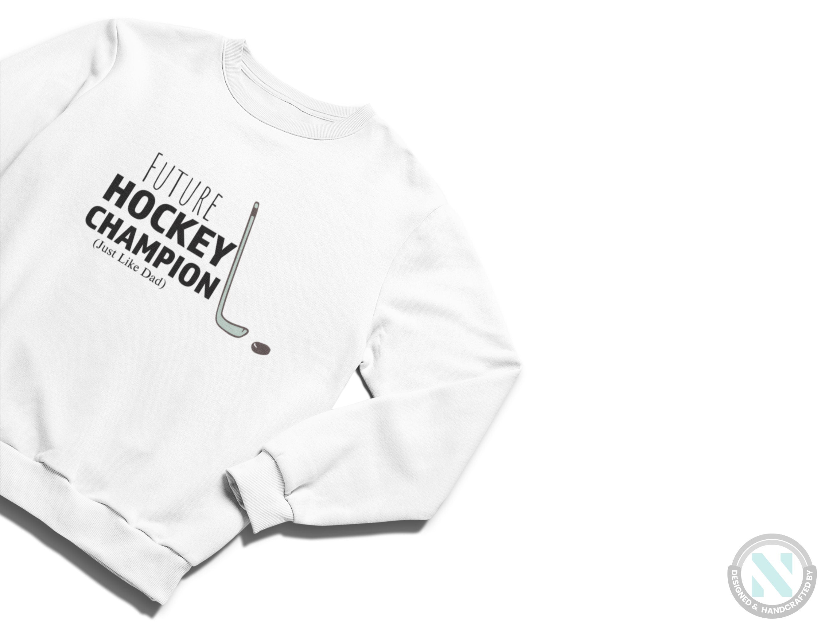 The 'Future Hockey Champion' text adds a motivational touch, making this sweatshirt a standout piece in any toddler's wardrobe. Personalized Jumperd with your child's name, it becomes a unique and cherished gift that celebrates his love for the sport and his aspirations.