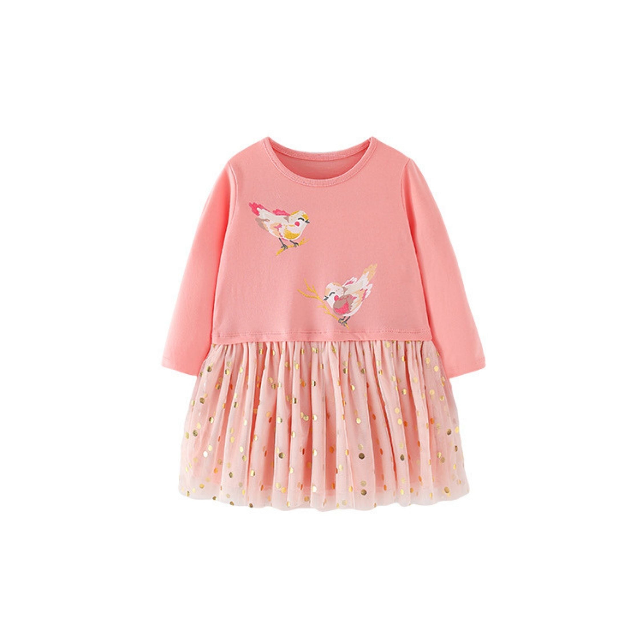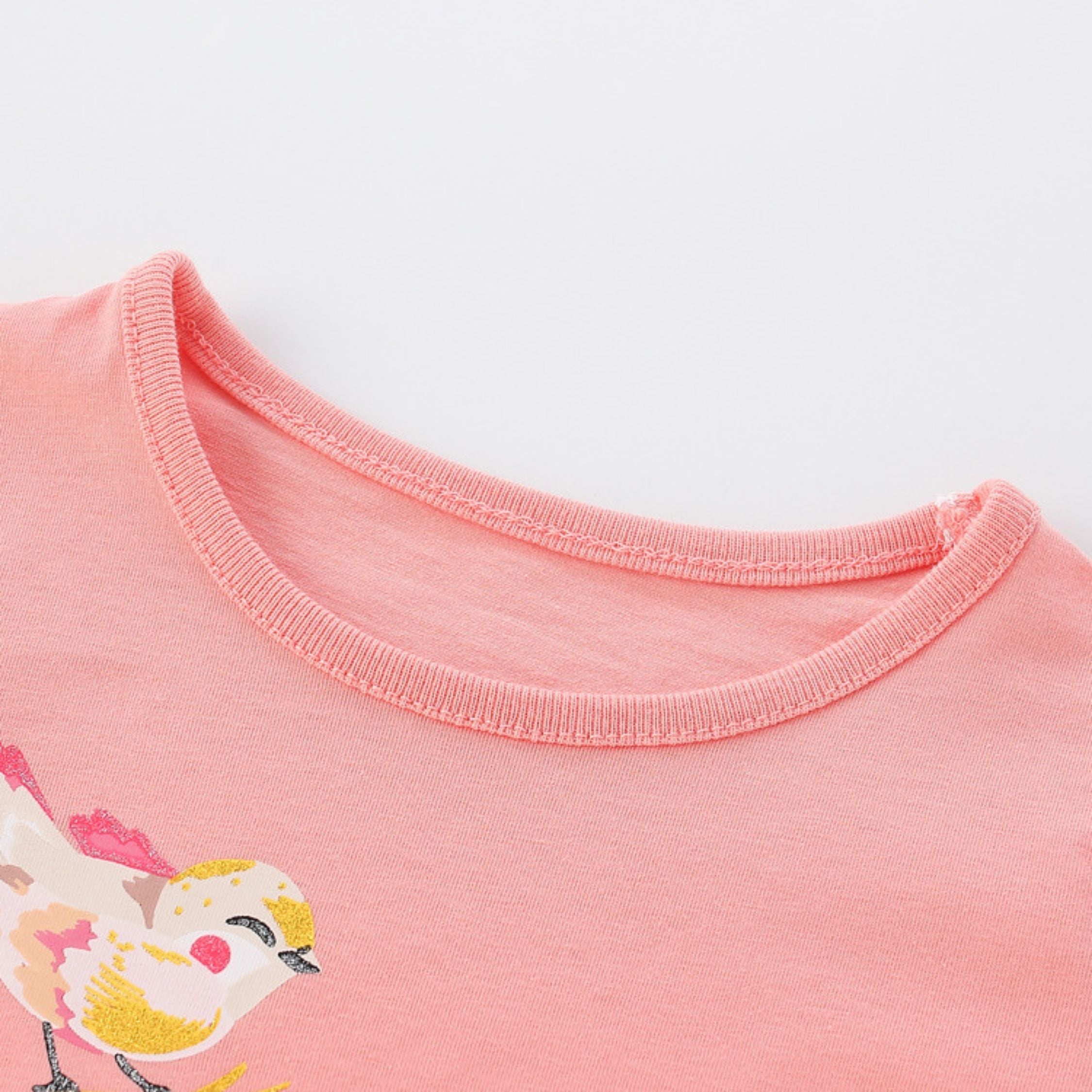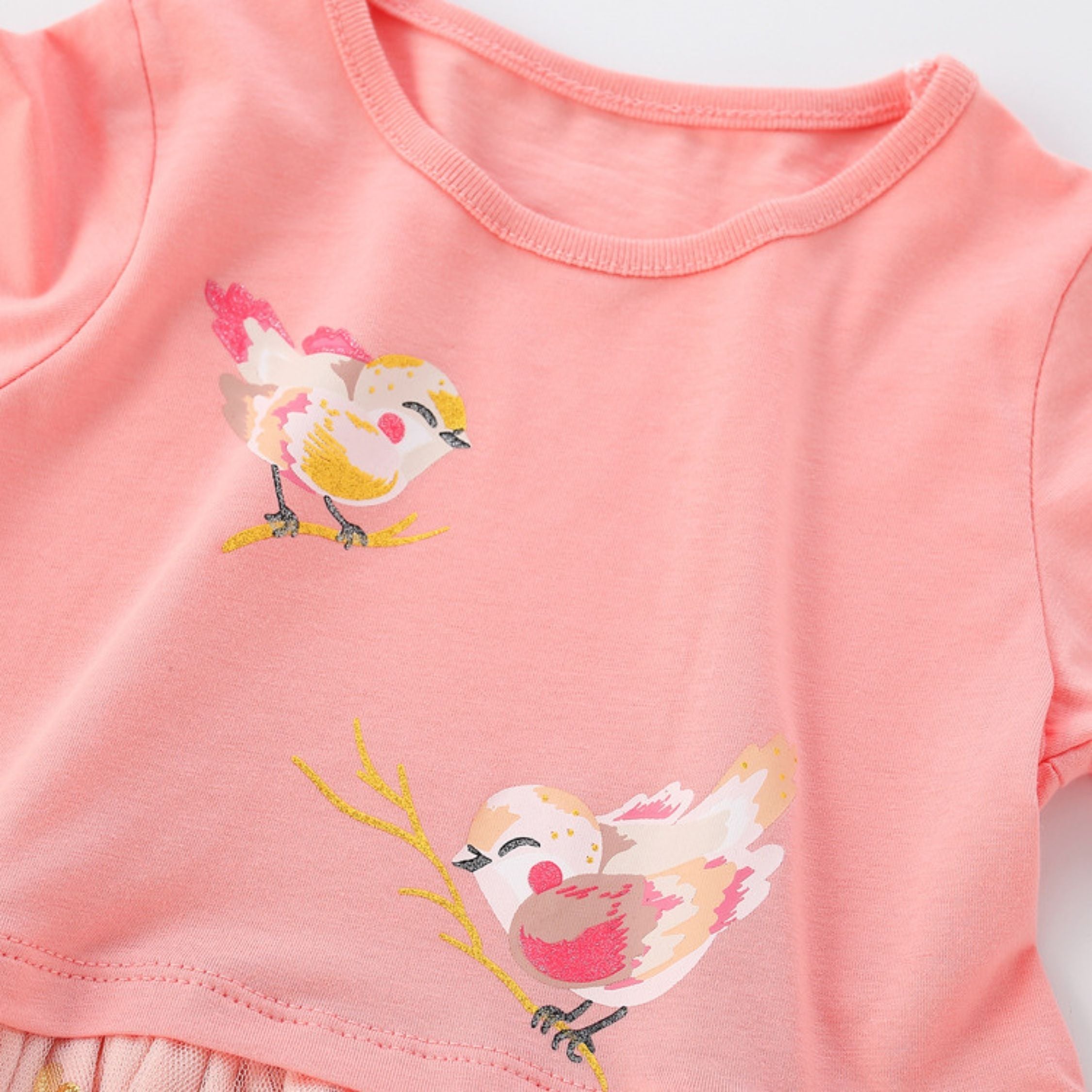 This adorable dress is sure to become a favorite. Simple and cute, it's the perfect way to wear your little girl's favorite colors. Cute birds are printed on the front of this dress to take her style to the next level. The lightweight material allows for quick and easy movement. Pair with matching leggings for a casual, comfortable ensemble.