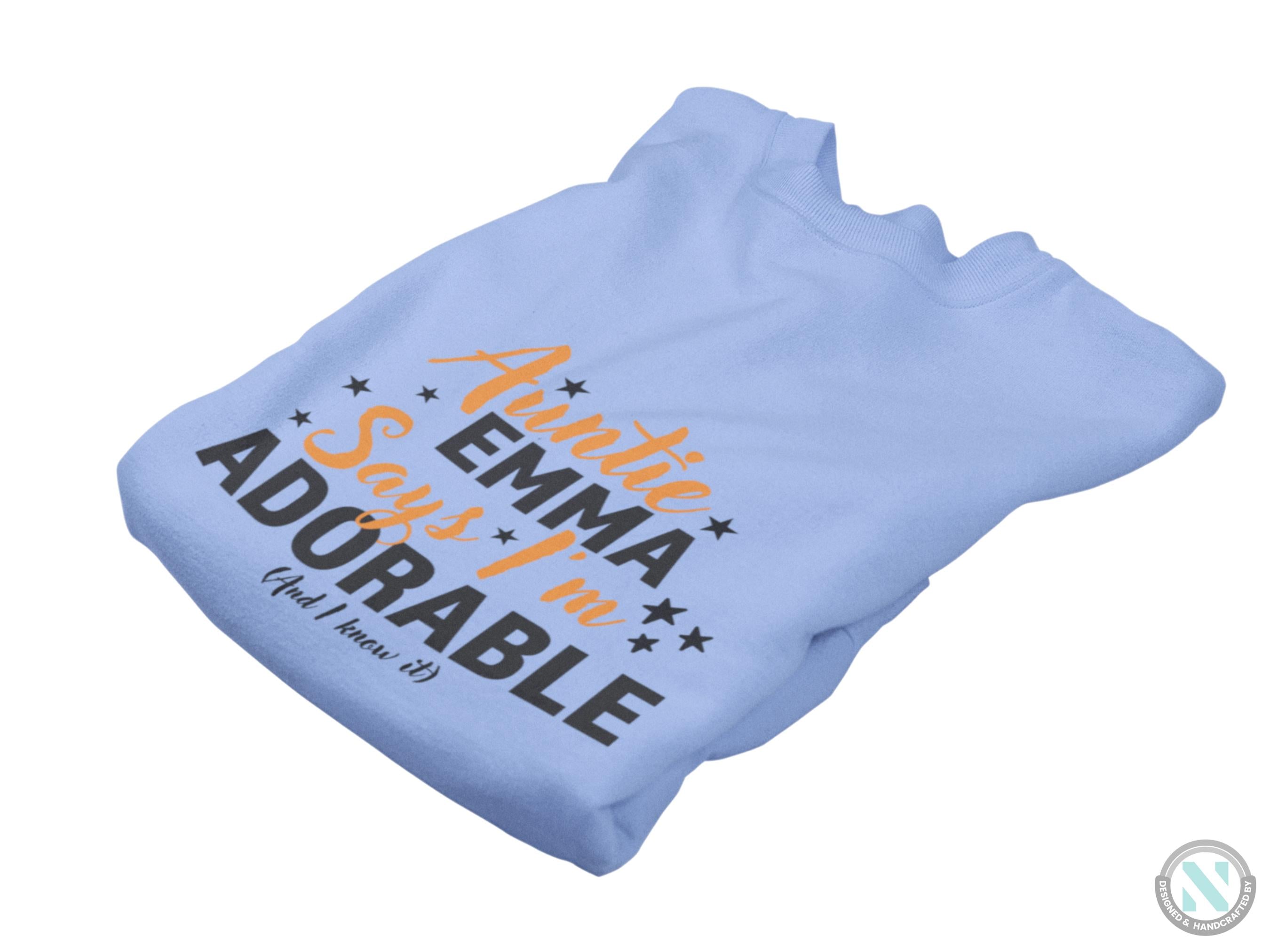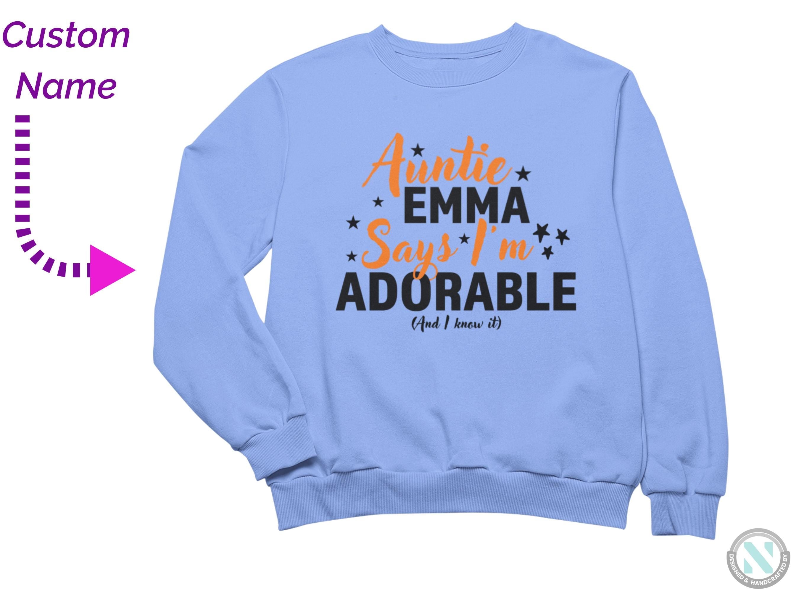 Personalized Girl Sweatshirt Gift from Auntie Says I'm Adorable Text