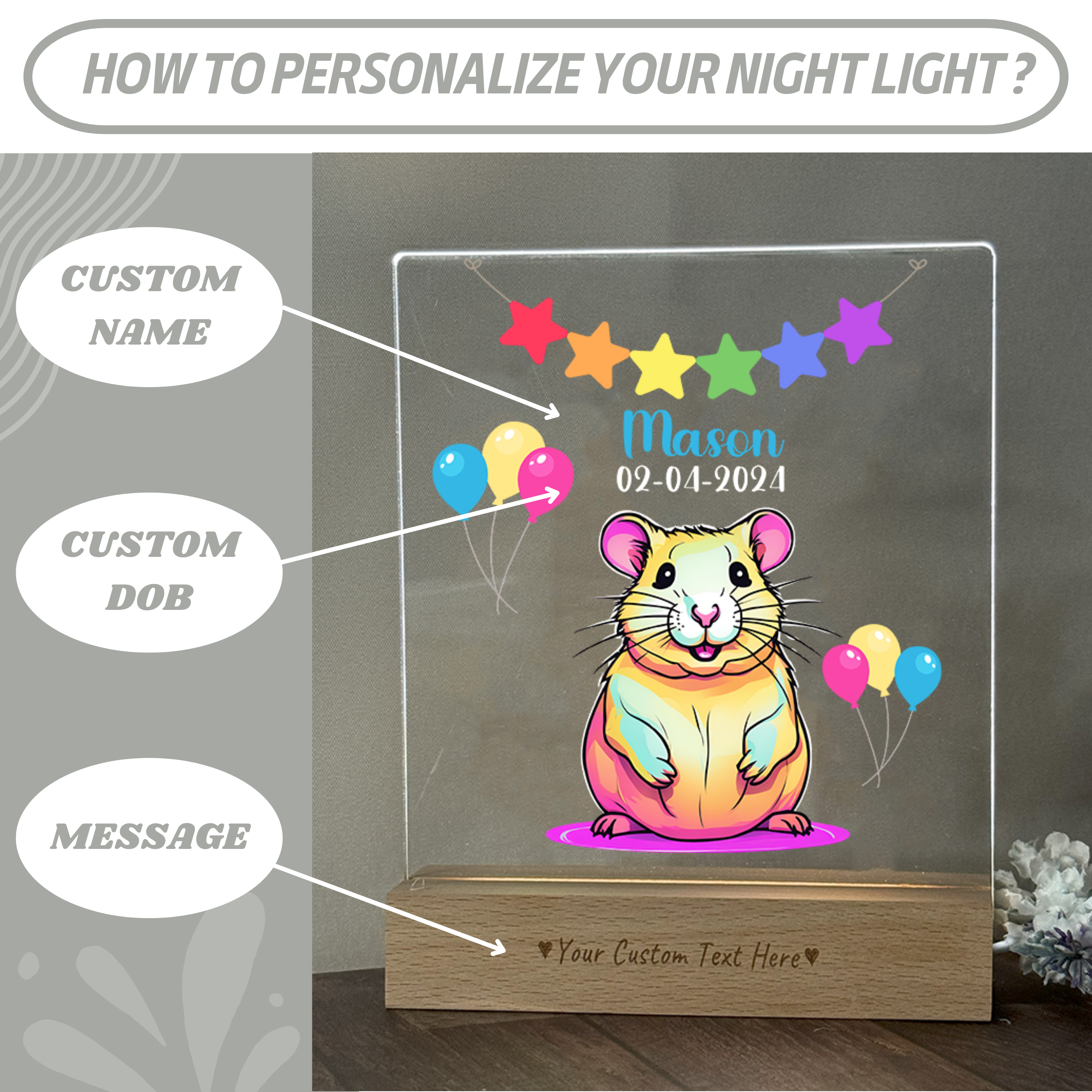 Custom Baby Hamster Night Light Birthday Gift for Baby Room - Custom Name Baby lights Gift