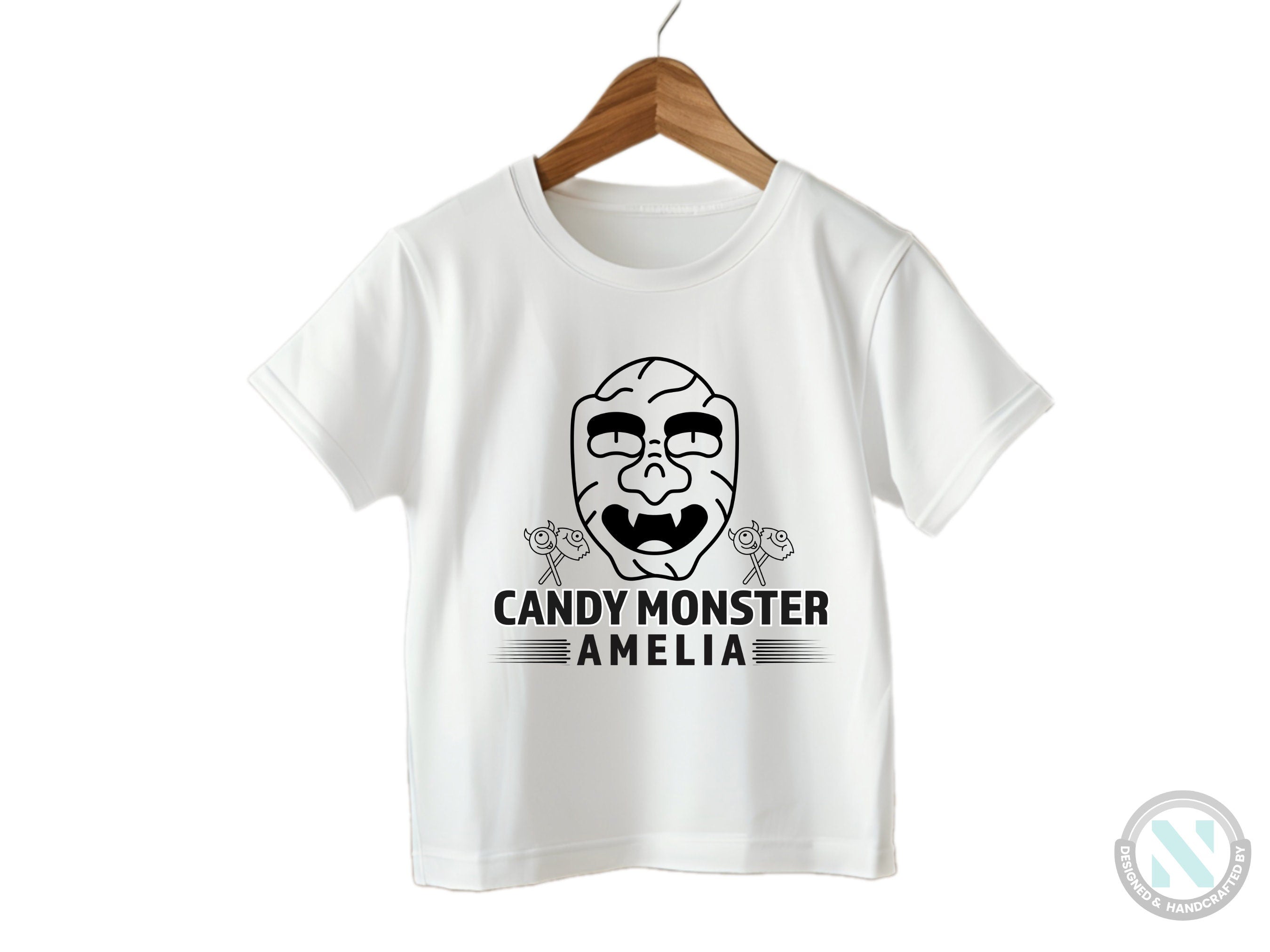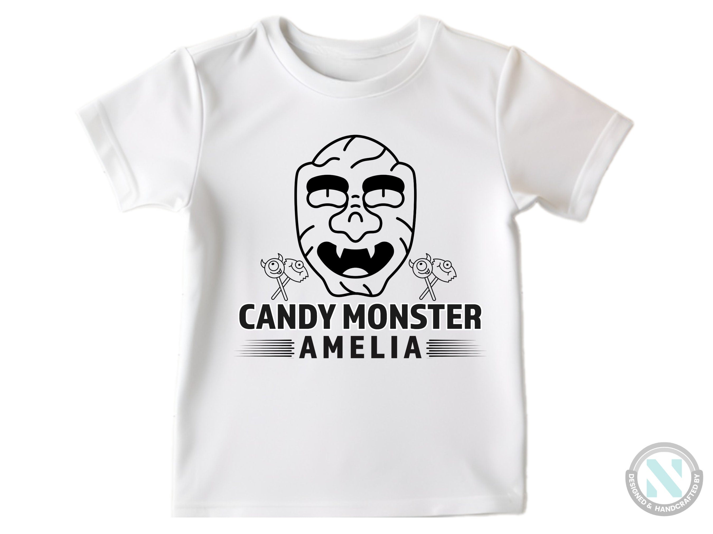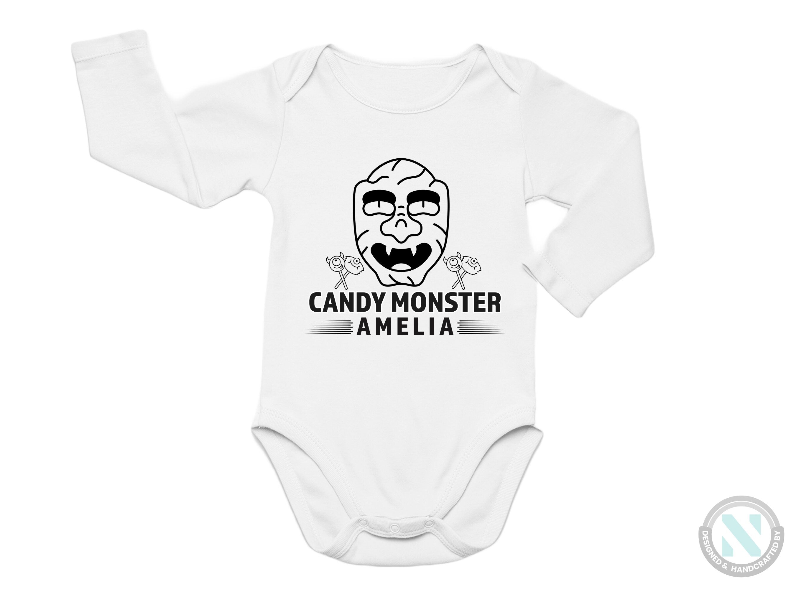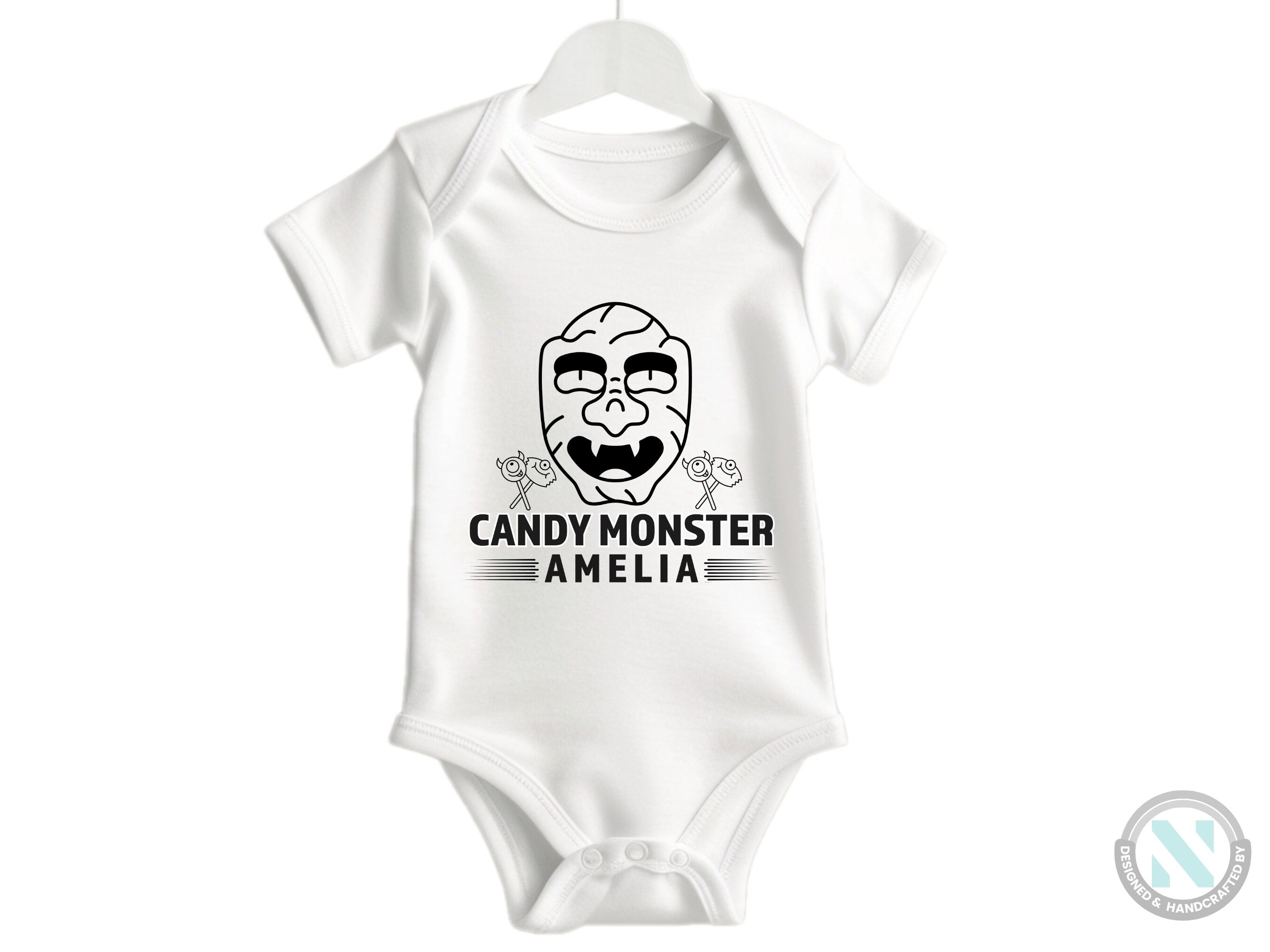 Halloween Personalize Baby Girl Name Bodysuit With Candy Monster