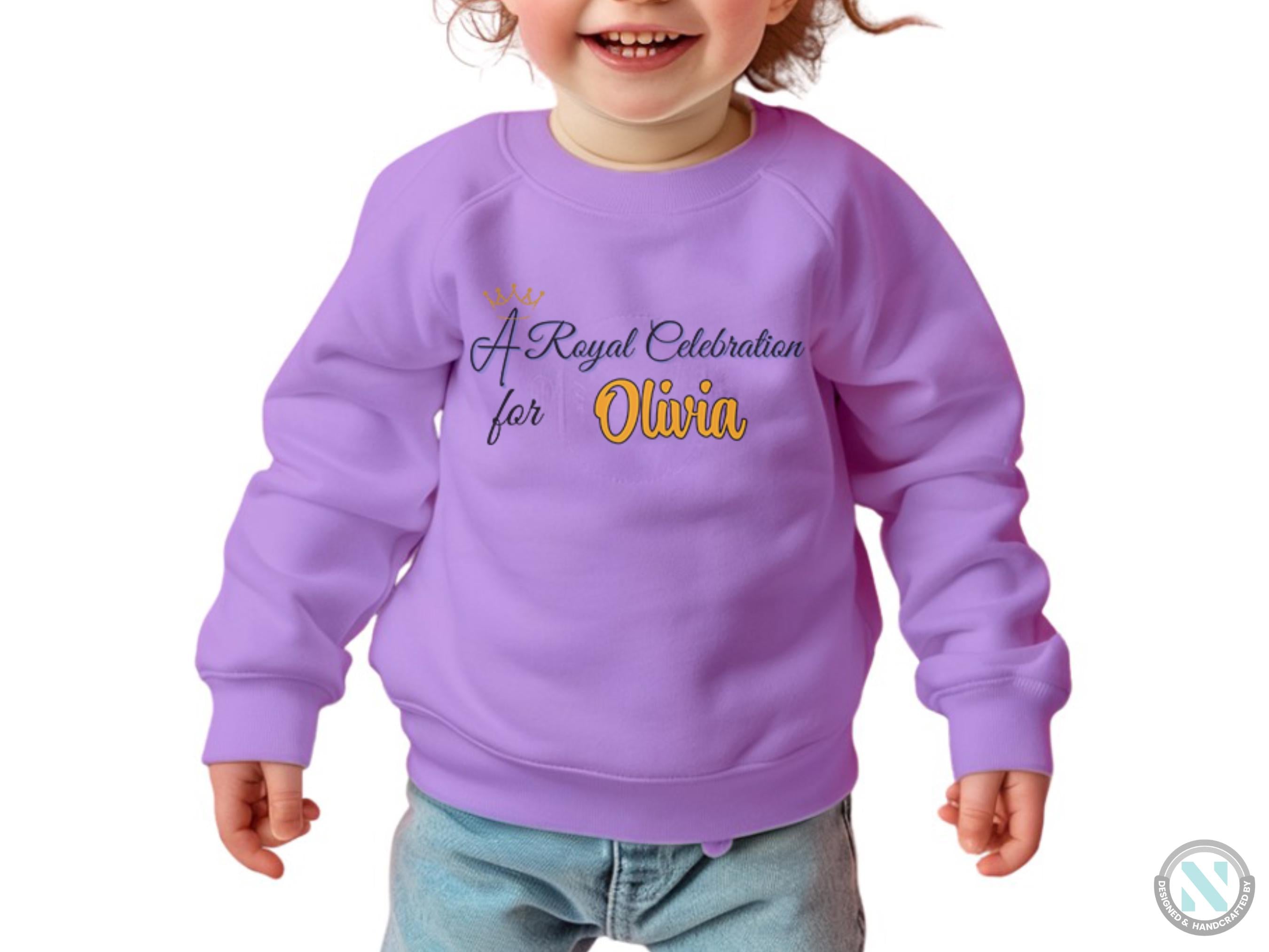 Step into a world of regal charm with the "A Royal Celebration" Personalized Jumperd Long Sleeve Toddler Girls Sweatshirt. This custom winter garment transcends mere clothing—it's a majestic tribute to her individuality, making it the ideal Christmas gift for girls.