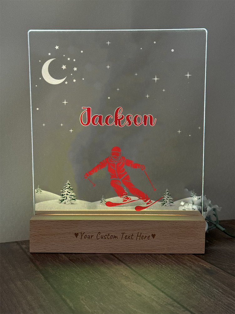 Personalized Name Skiing Night Light Gift for Toddler Boys Bedroom Decor - Custom Your Baby Name on Lamp Gift