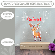Christmas Reindeer theme Custom Name Night Light Gift for Kids - Custom Your Baby Name on Lamp Gift