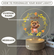 Step into a gentle jungle at bedtime with our Personalized Night Light Gift for Kids Baby Teddy Theme Lamp . This Custom Name Night Light is a tender guardian for your child’s slumber, casting a soft, reassuring glow in their Kids Room Decor.