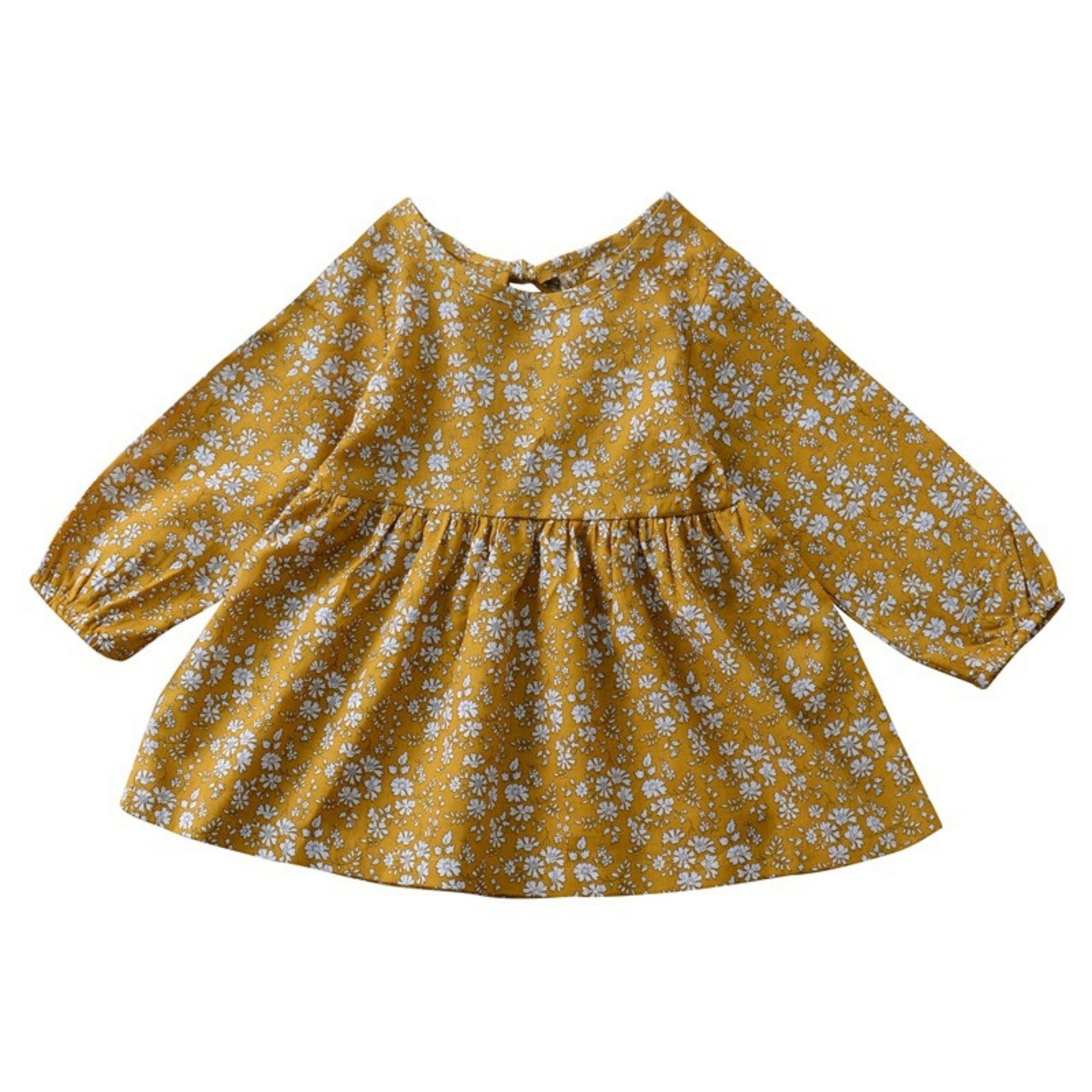 SkipStars Full Sleeve Daisy Flower Theme Girls Dress, Mustard