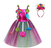 Make your little girl feel like a real Princess with this stunning Girls Candy Tutu Dress . This beautiful dress is perfect for birthdays, dress-up play, or any occasion where your little one wants to feel like a magical princess. Inspired by Reck it Ralph and the Sugar Rush game, this dress is perfect for fancy dress or themed birthdays. Shiny and colorful, comes with matching headband