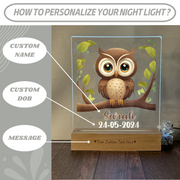 New Born Personalized Night Light Owl Lamp for Baby Room - Custom Your Baby Name on Lamp Gift