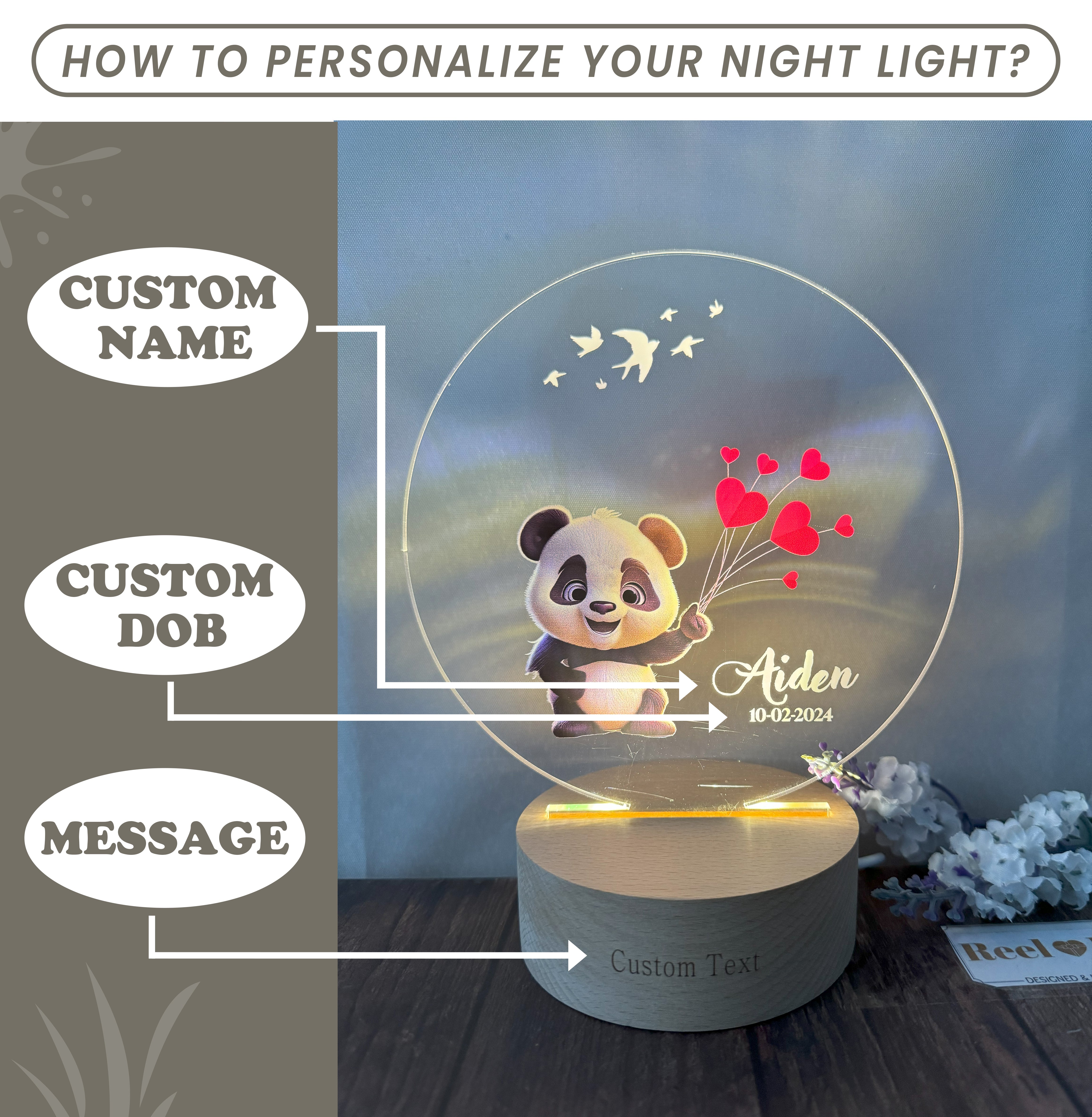 Personalize Your Child Name and DOB on Baby Panda Night Light for Birthday - Custom Your Baby Name on Night Lights