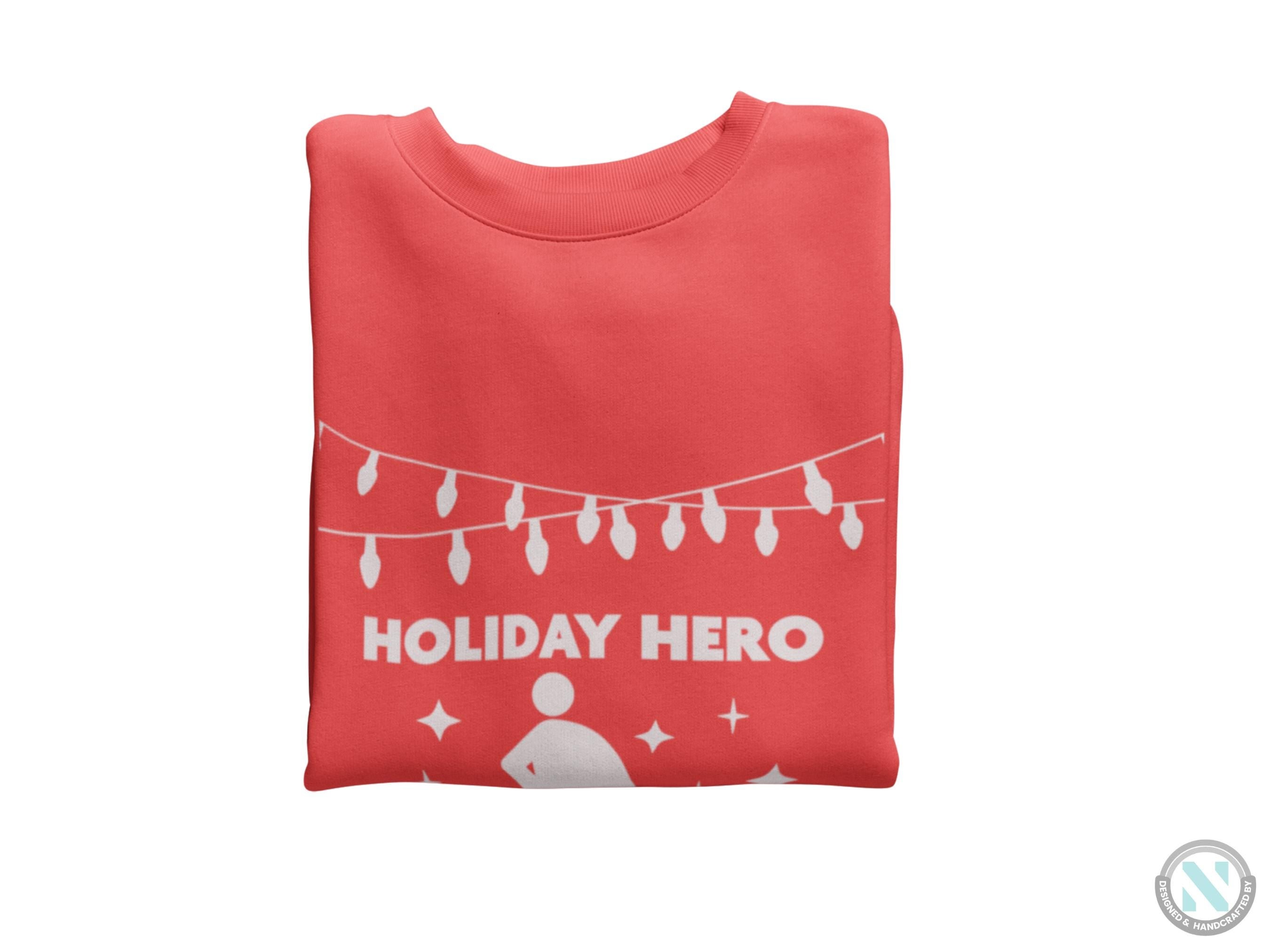 a red holiday shirt with a holiday hero on it