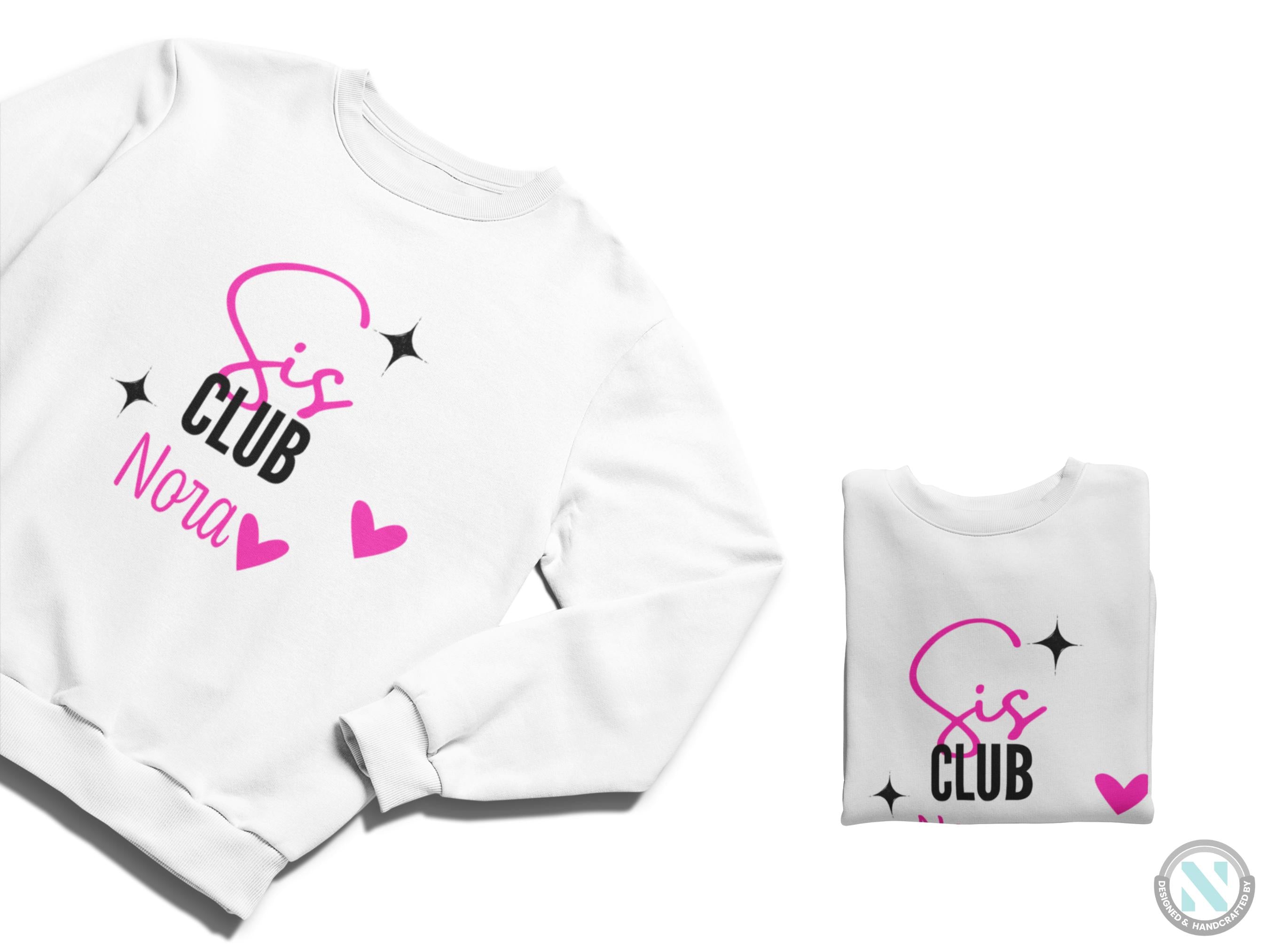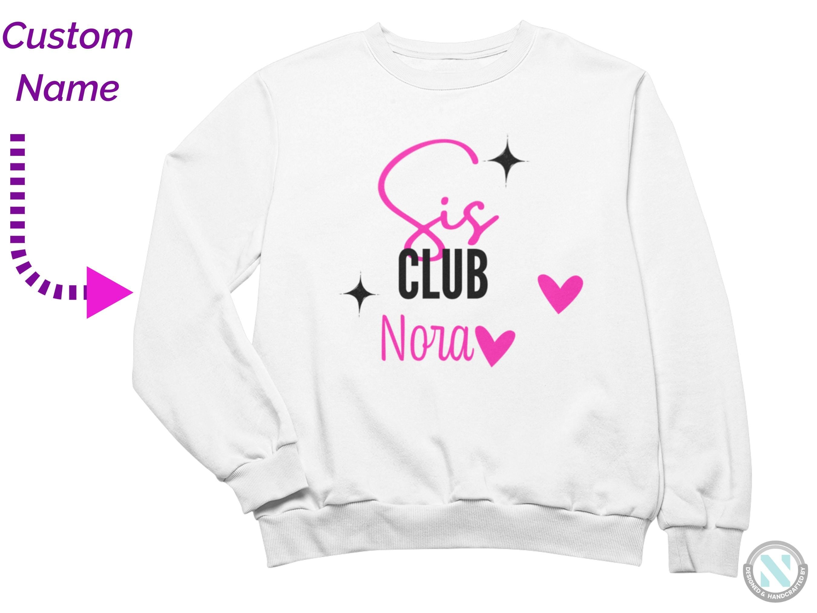 Toddler Girls Personalized Name Sweatshirt Gift with Sis Club Text